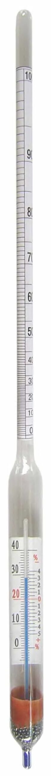 Alkoholspindel 0-100% – mit Thermometer